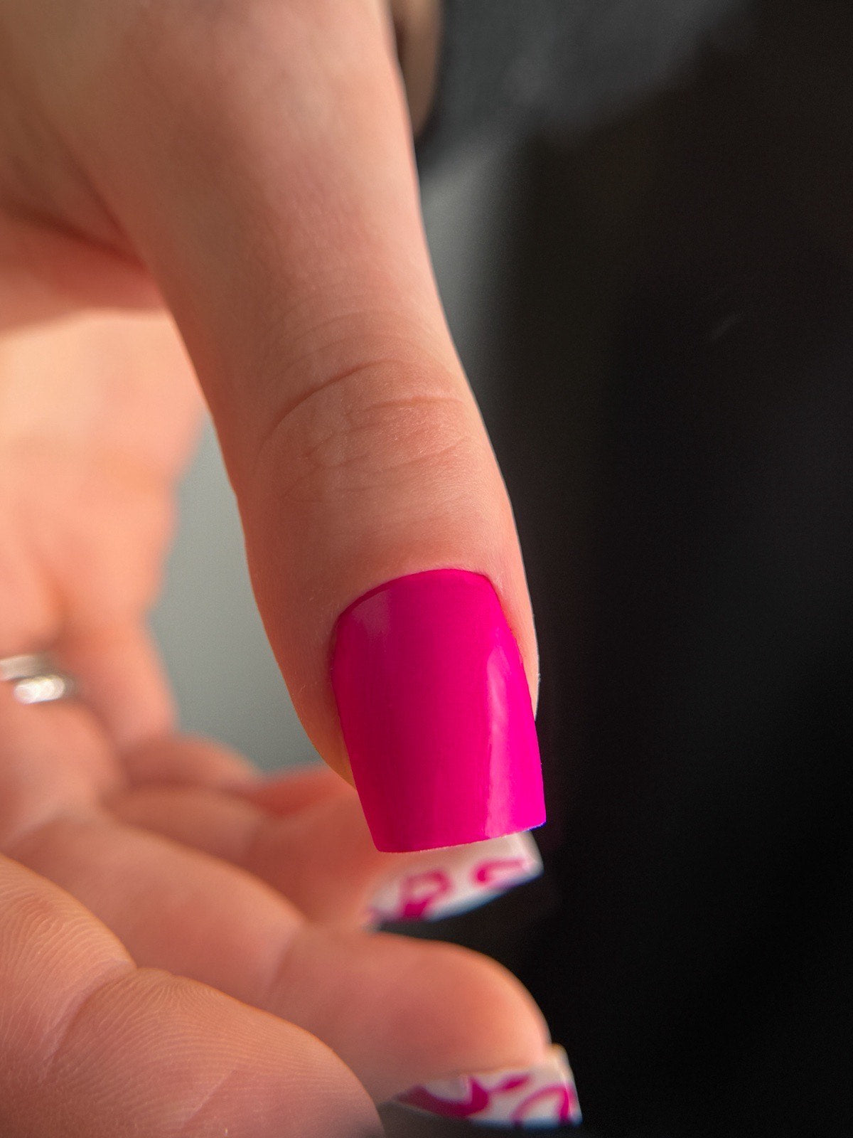 We apply the film with an air-drying top coat or a gel polish elastic clear base and top coat.