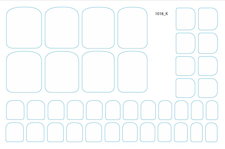 Rinkinyje – vienas 15,5 × 10,5 cm lapas su 40 skirtingo dydžio plėvelėmis.